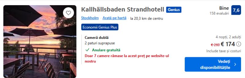 135 €/pers. (zbor si cazare Kallhällsbaden Strandhotell )