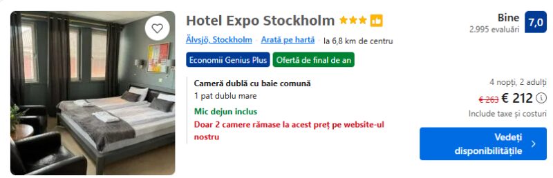 154 €/pers. (zbor si cazare Hotel Expo Stockholm )