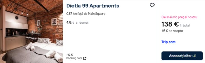 100 €/pers. (zbor si cazare Dietla 99 Apartments )