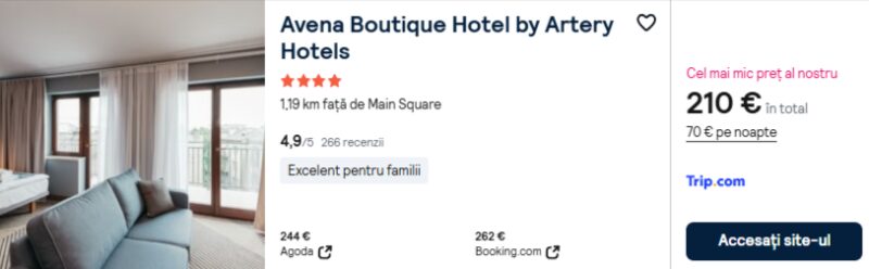 136 €/pers. (zbor si cazare Avena Boutique Hotel by Artery Hotels )