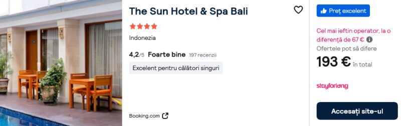 876 €/pers. (zbor si cazare The Sun Hotel & Spa Bali )
