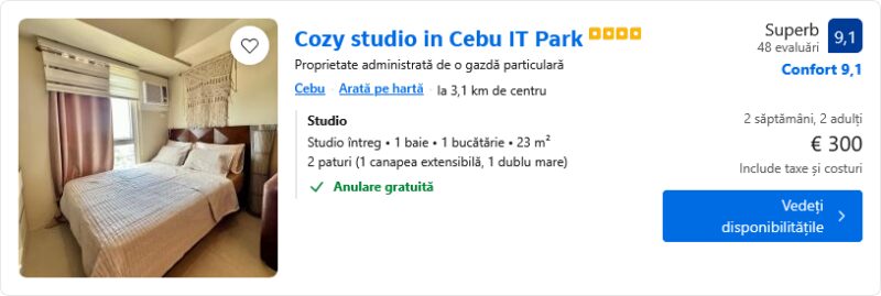 1119 €/pers. (zbor si cazare Cozy studio in Cebu IT Park )
