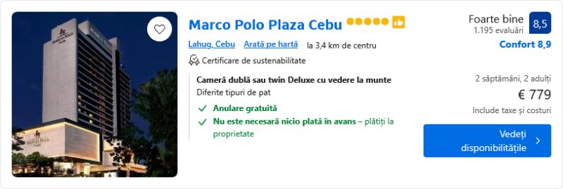 1359 €/pers. (zbor si cazare Marco Polo Plaza Cebu )