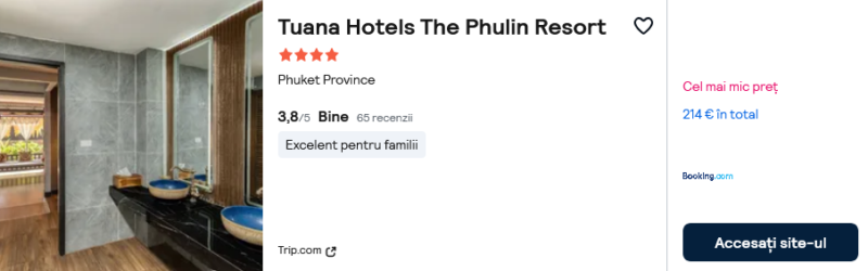 852 €/pers. (zbor si cazare Tuana Hotels The Phulin Resort )