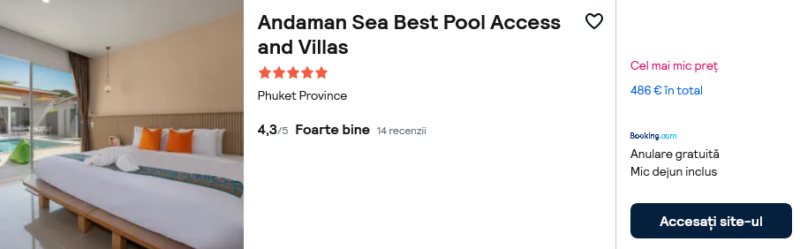 988 €/pers. (zbor si cazare Andaman Sea Best Pool Access and Villas )