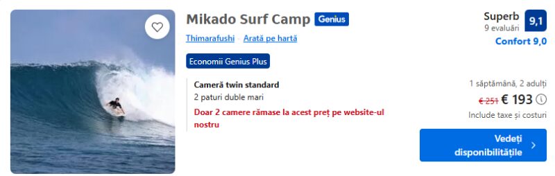 784 €/pers. (zbor si cazare Mikado Surf Camp )