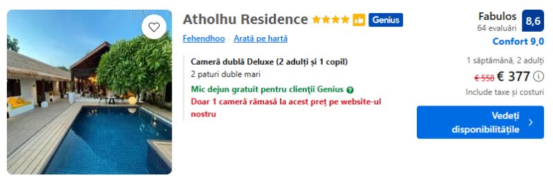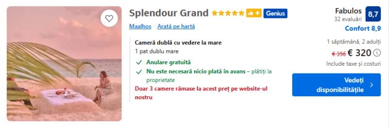 Uite o idee care mi-a atras atentia: pentru aproximativ 784 euro, poti sa ai deja incluse zbor dus-intors si cazare. E genul de oferta DIY unde rezervi separat, dar ai control total asupra vacantei tale.