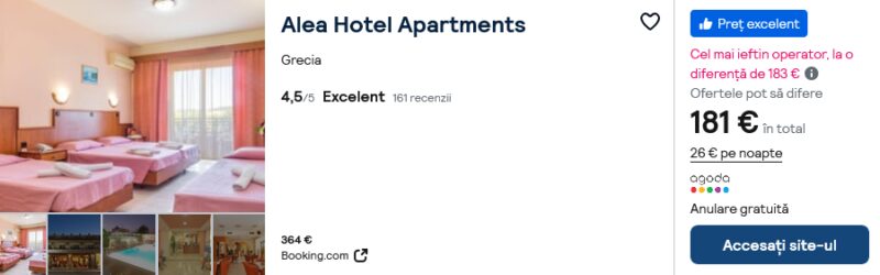 290 €/pers. (zbor si cazare Alea Hotel Apartments )