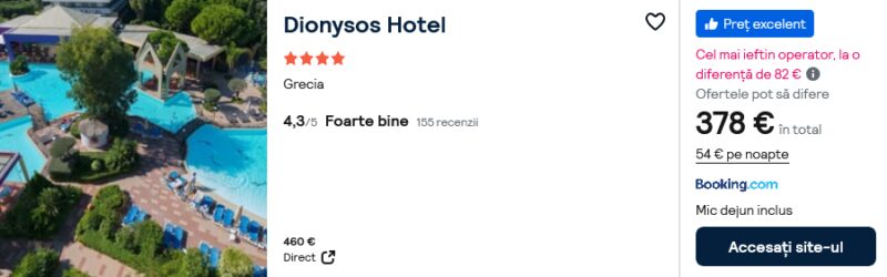 388 €/pers. (zbor si cazare Dionysos Hotel )