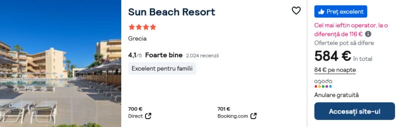 491 €/pers. (zbor si cazare Sun Beach Resort )