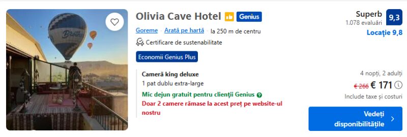 235 €/pers. (zbor si cazare Olivia Cave Hotel )