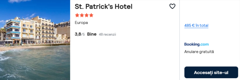 334 €/pers. (zbor si cazare St. Patrick’s Hotel )
