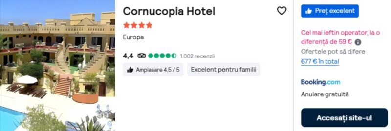430 €/pers. (zbor si cazare Cornucopia Hotel )