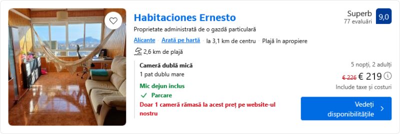 176 €/pers. (zbor si cazare Habitaciones Ernesto )