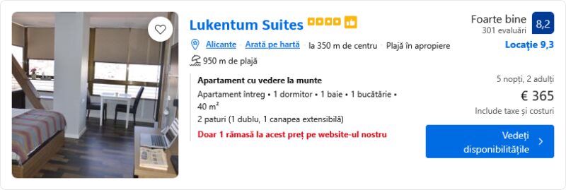 249 €/pers. (zbor si cazare Lukentum Suites )