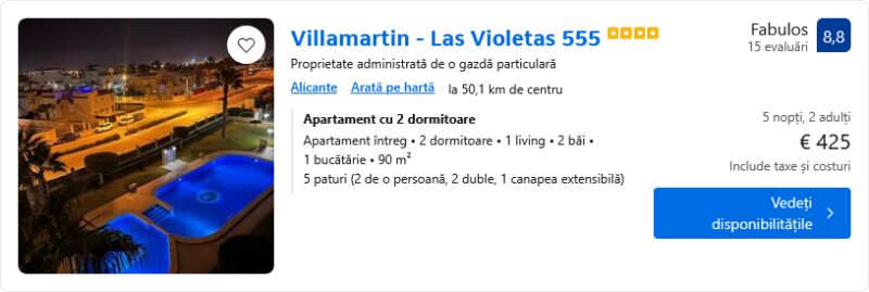 279 €/pers. (zbor si cazare Villamartin – Las Violetas 555 )