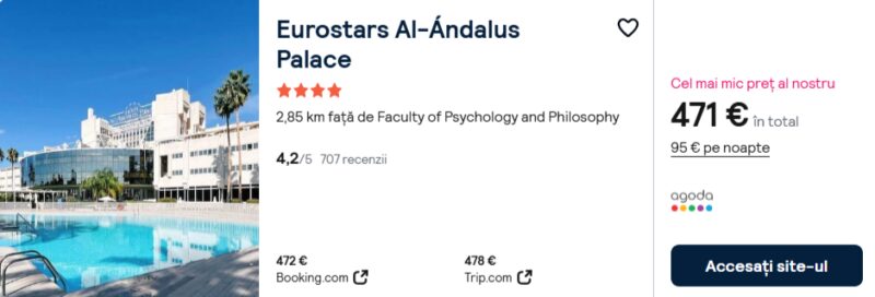 350 €/pers. (zbor si cazare Eurostars Al-Ándalus Palace )