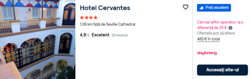 404 €/pers. (zbor si cazare Hotel Cervantes )