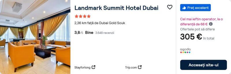 346 €/pers. (zbor si cazare Landmark Summit Hotel Dubai )