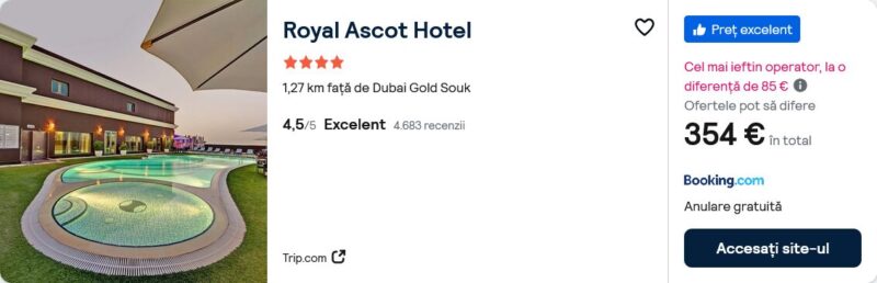 370 €/pers. (zbor si cazare Royal Ascot Hotel )