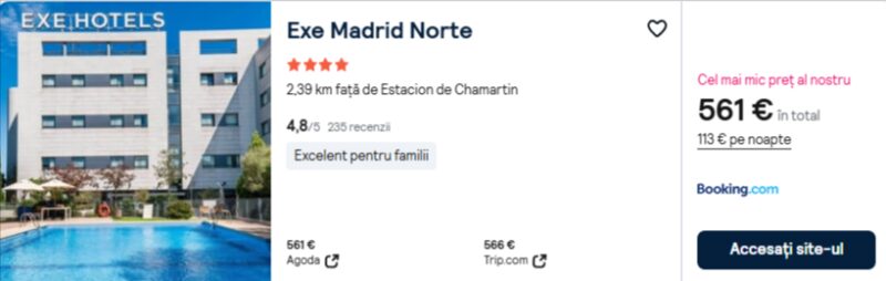 359 €/pers. (zbor si cazare Exe Madrid Norte )
