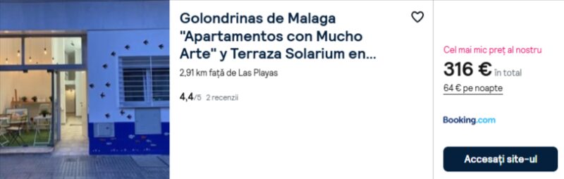 227 €/pers. (zbor si cazare Golondrinas de Malaga „Apartamentos con Mucho Arte” y Terraza Solarium en Coliving )
