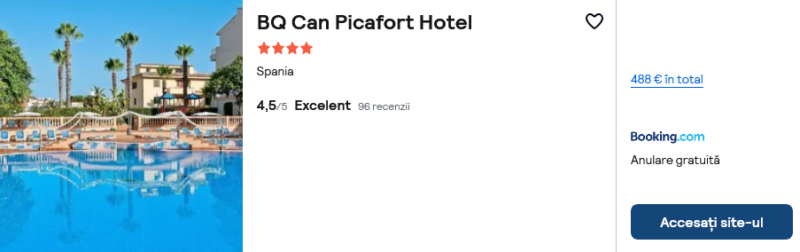 378 €/pers. (zbor si cazare BQ Can Picafort Hotel )