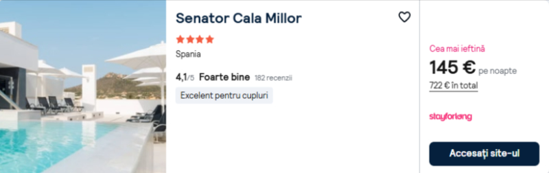 523 €/pers. (zbor si cazare Senator Cala Millor )