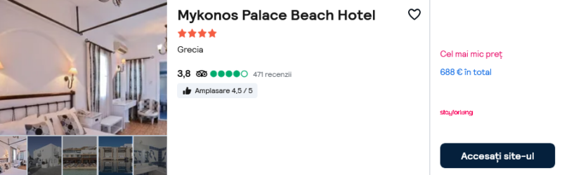 407 €/pers. (zbor si cazare Mykonos Palace Beach Hotel )