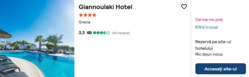 502 €/pers. (zbor si cazare Giannoulaki Hotel )