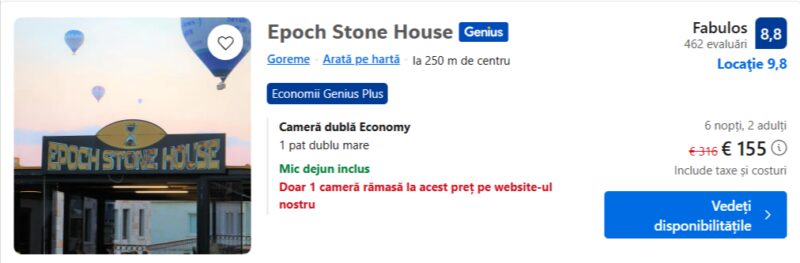 198 €/pers. (zbor si cazare Epoch Stone House )