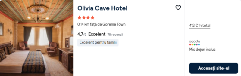 423 €/pers. (zbor si cazare Olivia Cave Hotel )