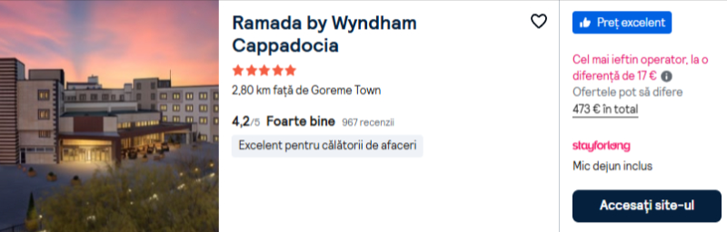 454 €/pers. (zbor si cazare Ramada by Wyndham Cappadocia )