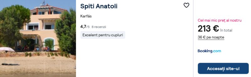 240 €/pers. (zbor si cazare Spiti Anatoli )