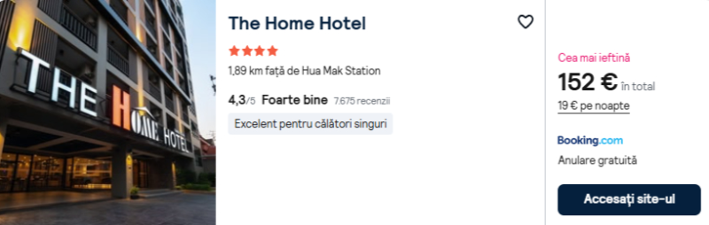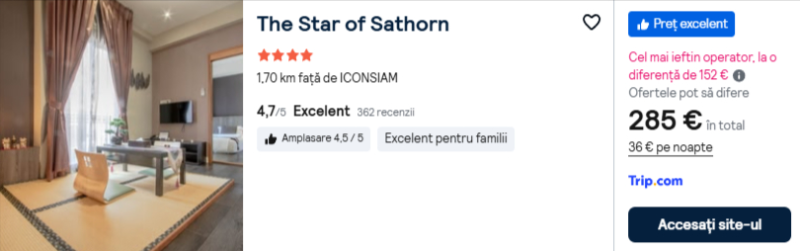 744 €/pers. (zbor si cazare The Star of Sathorn )