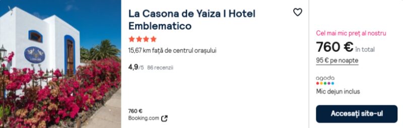 516 €/pers. (zbor si cazare La Casona de Yaiza I Hotel Emblematico )