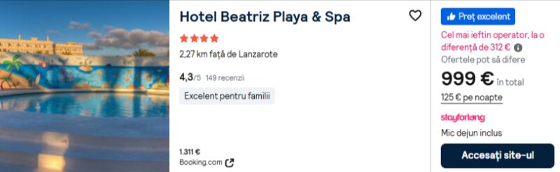 636 €/pers. (zbor si cazare Hotel Beatriz Playa & Spa )