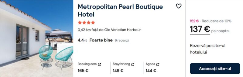 69 €/pers. ( cazare Metropolitan Pearl Boutique Hotel )
