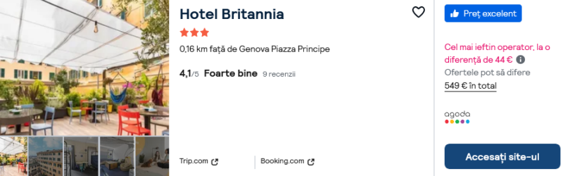 375 €/pers. (zbor si cazare Hotel Britannia )
