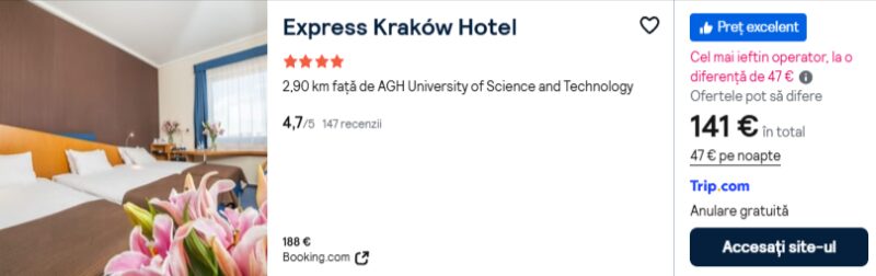 102 €/pers. (zbor si cazare Express Kraków Hotel )
