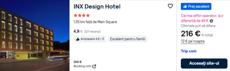 139 €/pers. (zbor si cazare INX Design Hotel )