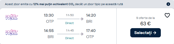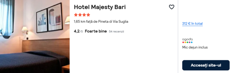 219 €/pers. (zbor si cazare Hotel Majesty Bari )