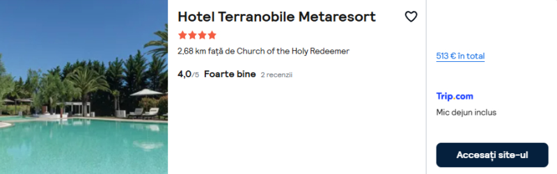 320 €/pers. (zbor si cazare Hotel Terranobile Metaresort )