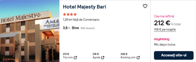 141 €/pers. (zbor si cazare Hotel Majesty Bari )