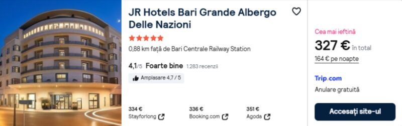 199 €/pers. (zbor si cazare JR Hotels Bari Grande Albergo Delle Nazioni )