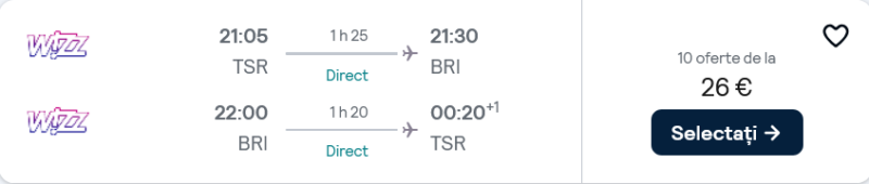 202 €/pers. (zbor si cazare Hotel Excelsior Bari )