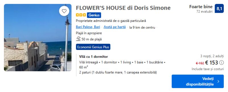 148 €/pers. (zbor si cazare FLOWER’S HOUSE di Doris Simone )