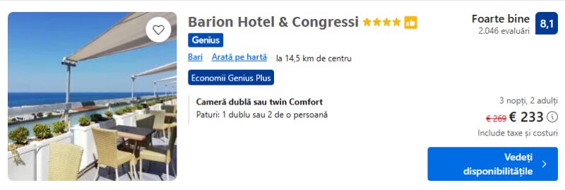 188 €/pers. (zbor si cazare Barion Hotel & Congressi )