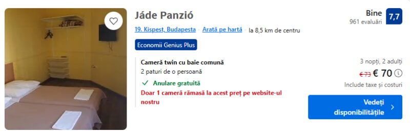 85 €/pers. (zbor si cazare Jáde Panzió )
