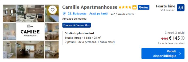 123 €/pers. (zbor si cazare Camille Apartmanhouse )